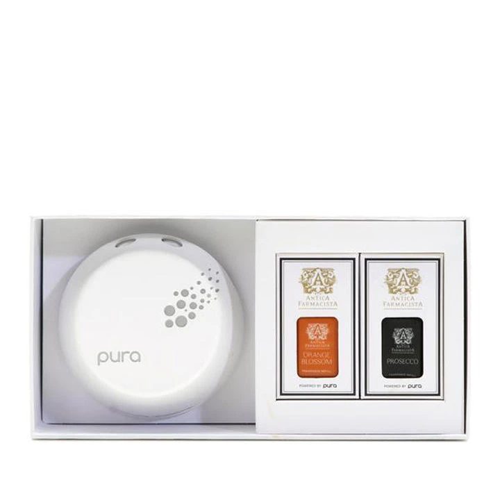 Beloved fragrances of Antica Farmacista, paired with the sleek technology of Pura for a home scent experience, reimagined. This Smart Home Fragrance Diffuser Set is the perfect way to get started: the set includes the Pura Smart Diffuser and two fragrance vials in Antica Farmacista’s top-selling scents