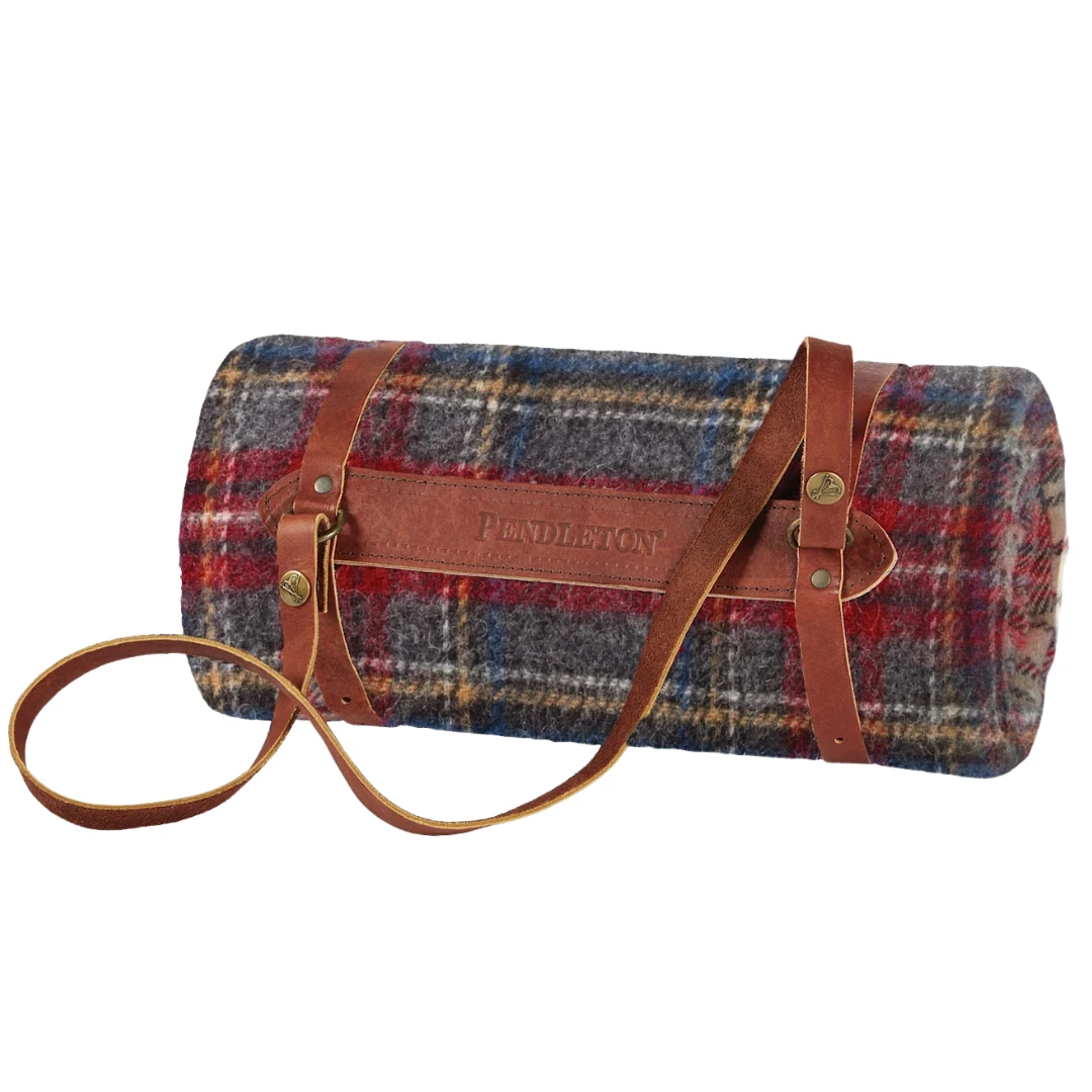 This pure virgin wool throw is softly napped and the perfect size to curl up with on the sofa or toss in the car. Each one is still woven in Pendleton’s American mills and comes with a convenient leather carriers. Called “steamer rugs” in the early 20th century, these blankets were a warm, welcome companion for those who traveled by horse-drawn carriage, train or boat. As a California customer raves, “Just right for a picnic, stadium or just around the house.”