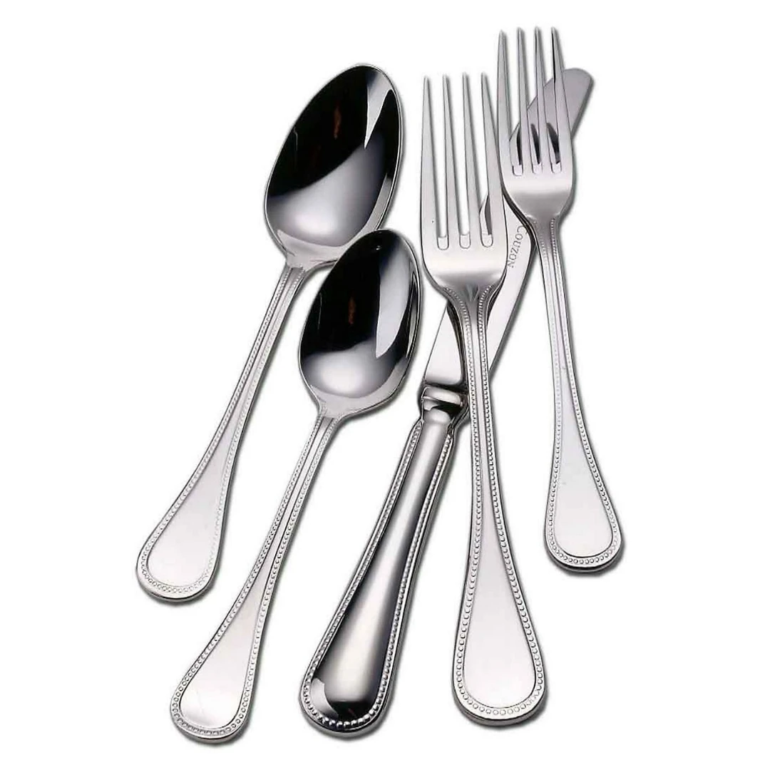 Couzon’s stainless steel Le Perle flatware set has a high polish shine that will elevate any table setting.