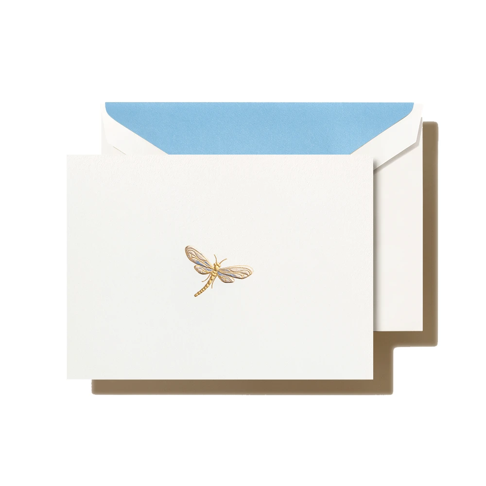 When times are tough, a note from a friend is a strengthening breath of fresh air. This delicate, engraved note features a shimmering gold dragonfly, a symbol of courage and happiness that will complement your hopeful message inside. A soft, blue envelope liner makes the experience of opening your letter an engaging one from start to finish.