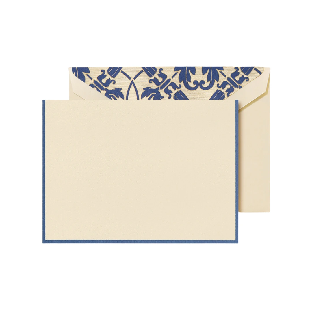 Searching for stationery worthy of a sincere thank you or a heartfelt love note? This warm white folded note, crafted from Crane’s pure cotton paper, has plenty of room to express yourself on any occasion. A Regent Blue border and matching envelope liner add a royal touch that’s as delightful to send as it is to receive.