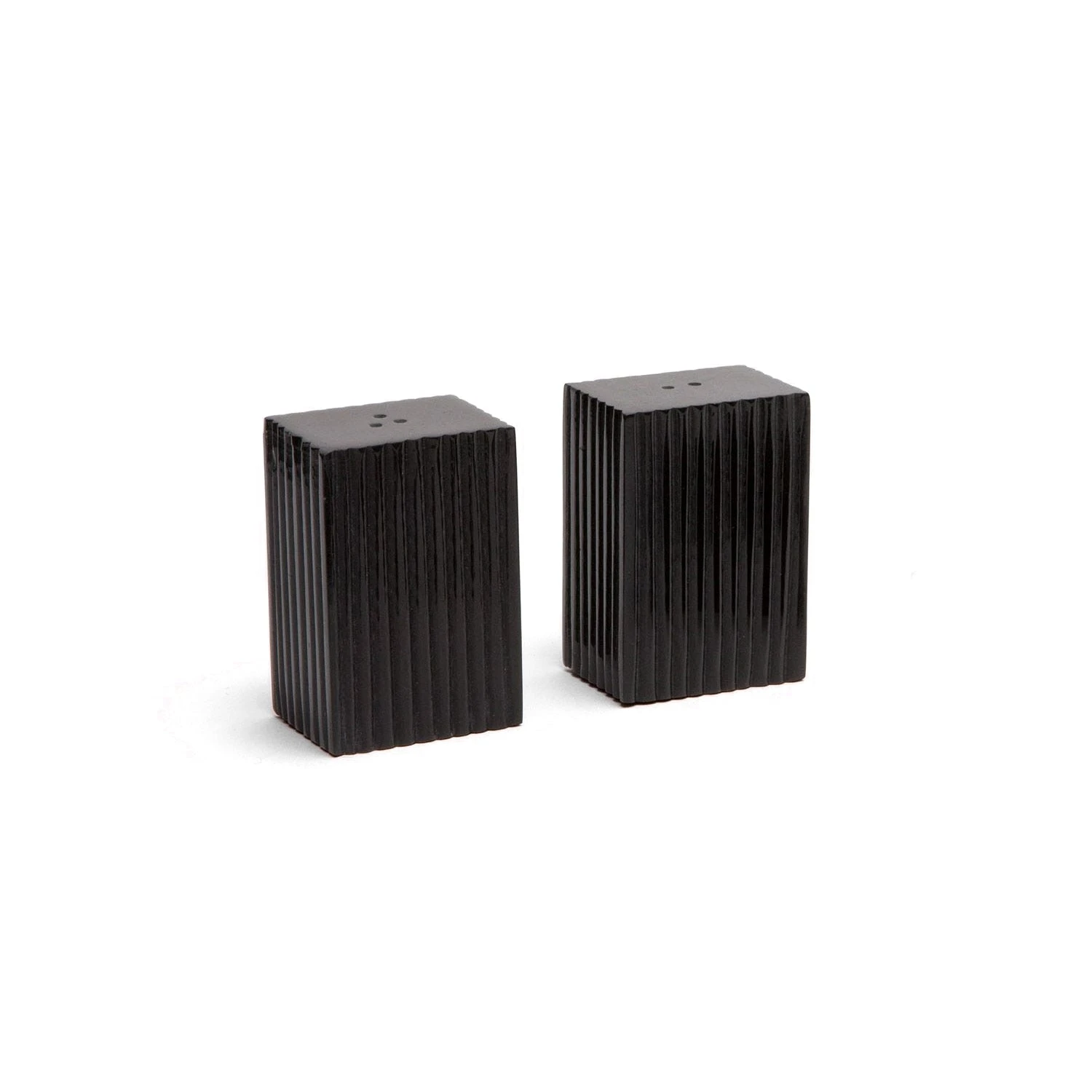 Ridged horn and bone salt and pepper shakers. Natural variation to be expected.