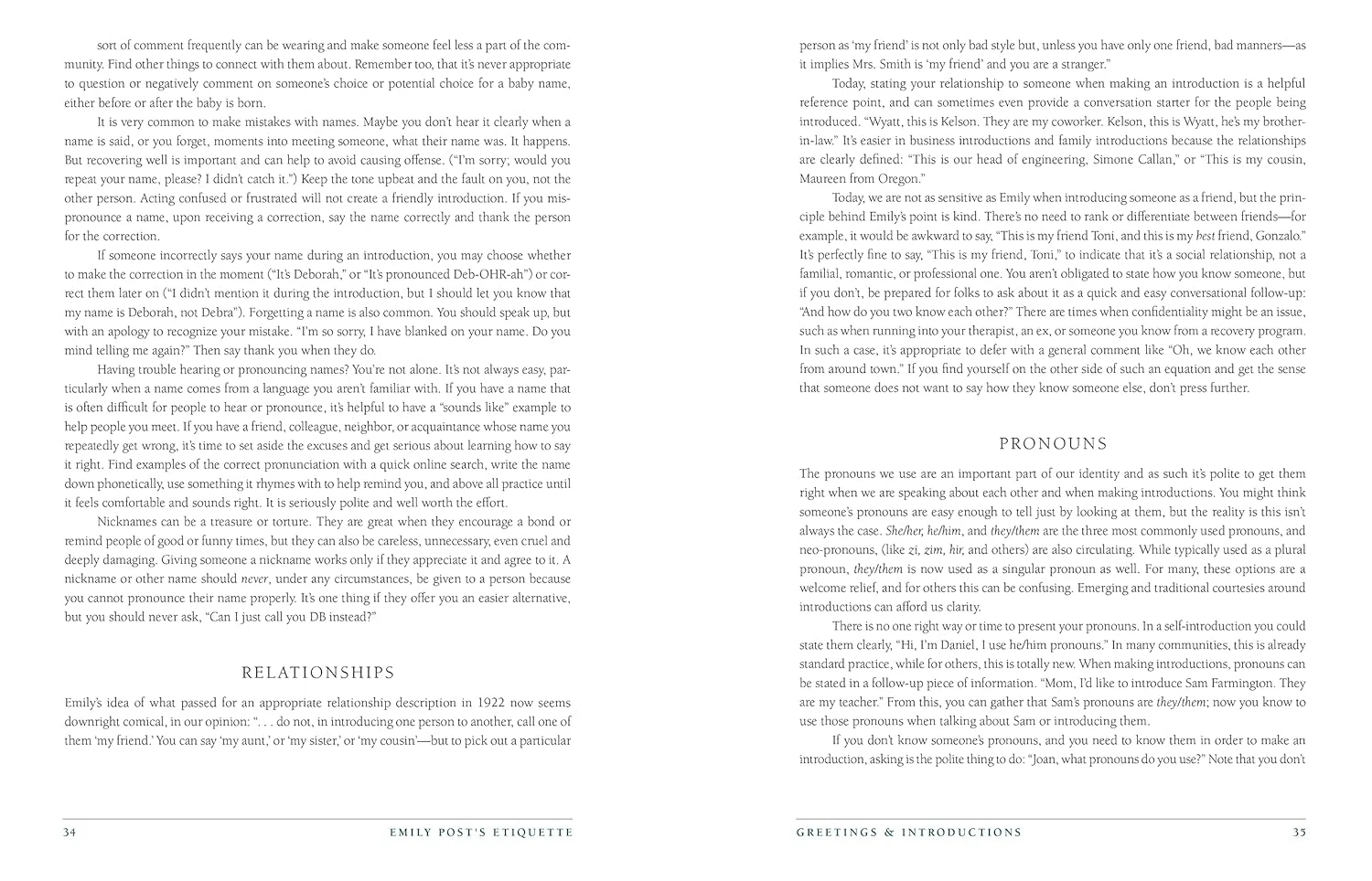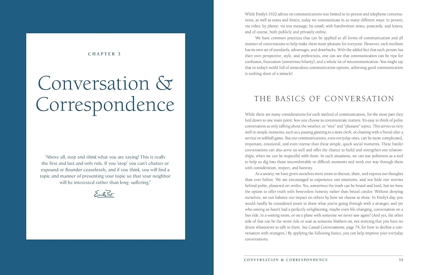 For the past one hundred years, Emily Post has been America’s definitive source for how to navigate—and enhance—every social interaction. In an increasingly diverse and intersectional world, the need for a trusted primer on how to put people at ease and treat others with confidence and kindness has never been greater.