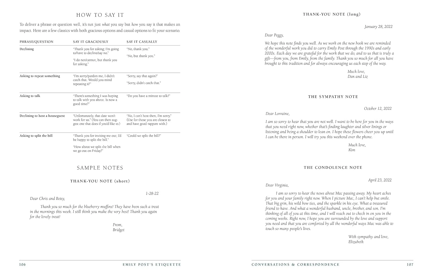 - Etiquette classics like table manners, gift-giving, thank-you notes, greetings and introductions, and everyday conversation