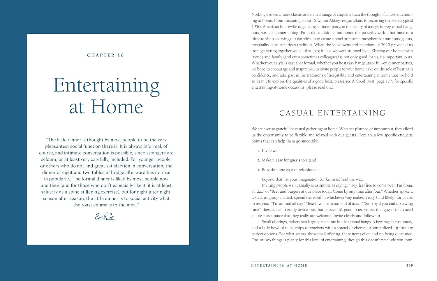 This book also includes handy reference guides for each chapter that make it easy to find the Posts’ most searched for content, like a gender-free attire guide, a soup-to-nuts entertaining chart, sample invitations, and more.