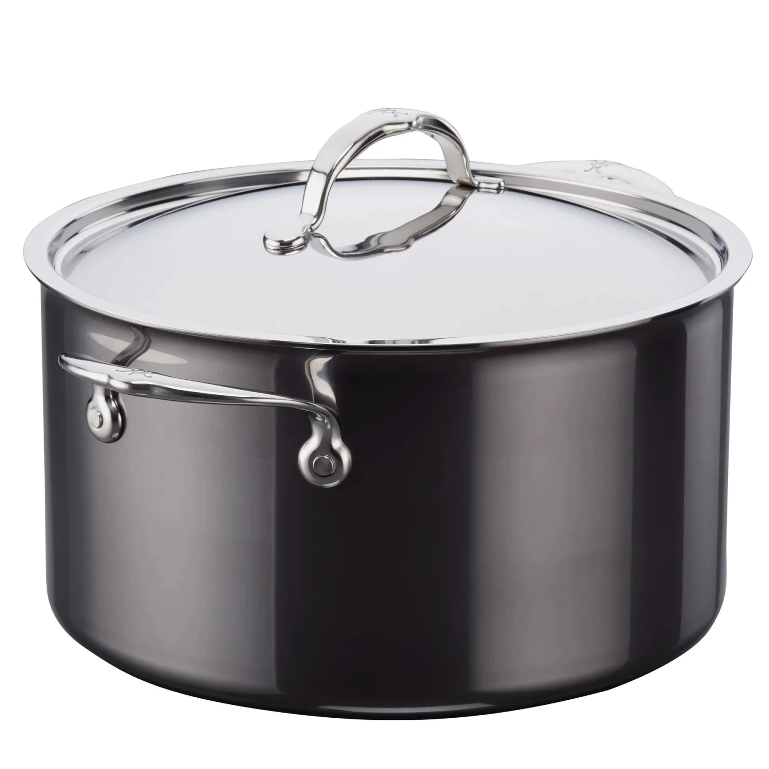 For groundbreaking innovations in cookware, equip the kitchen with a Hestan NanoBond Molecular Titanium Stainless Steel Stockpot. This large stockpot is ideal for cooking large quantities of soups, stews and stock, or cooking pasta. With its wide base for browning and high sides to reduce evaporation, this stockpot was designed to maximize flavor. Hestan’s innovative cookware technology, Molecular Titanium, bonds thousands of titanium nano-layers to the 18/10 stainless steel construction, creating a brilliantly resilient cooking surface 4X harder than typical stainless steel, making it resistant to scratching, staining, and salt pitting. This 100% nonreactive large stockpot is fitted with ergonomic handles for a comfortable grip when cooking and serving culinary creations. High heat and oven safe to a scorching 1050°F, this Italian handcrafted essential pan offers a lifetime durability for culinary perfection.