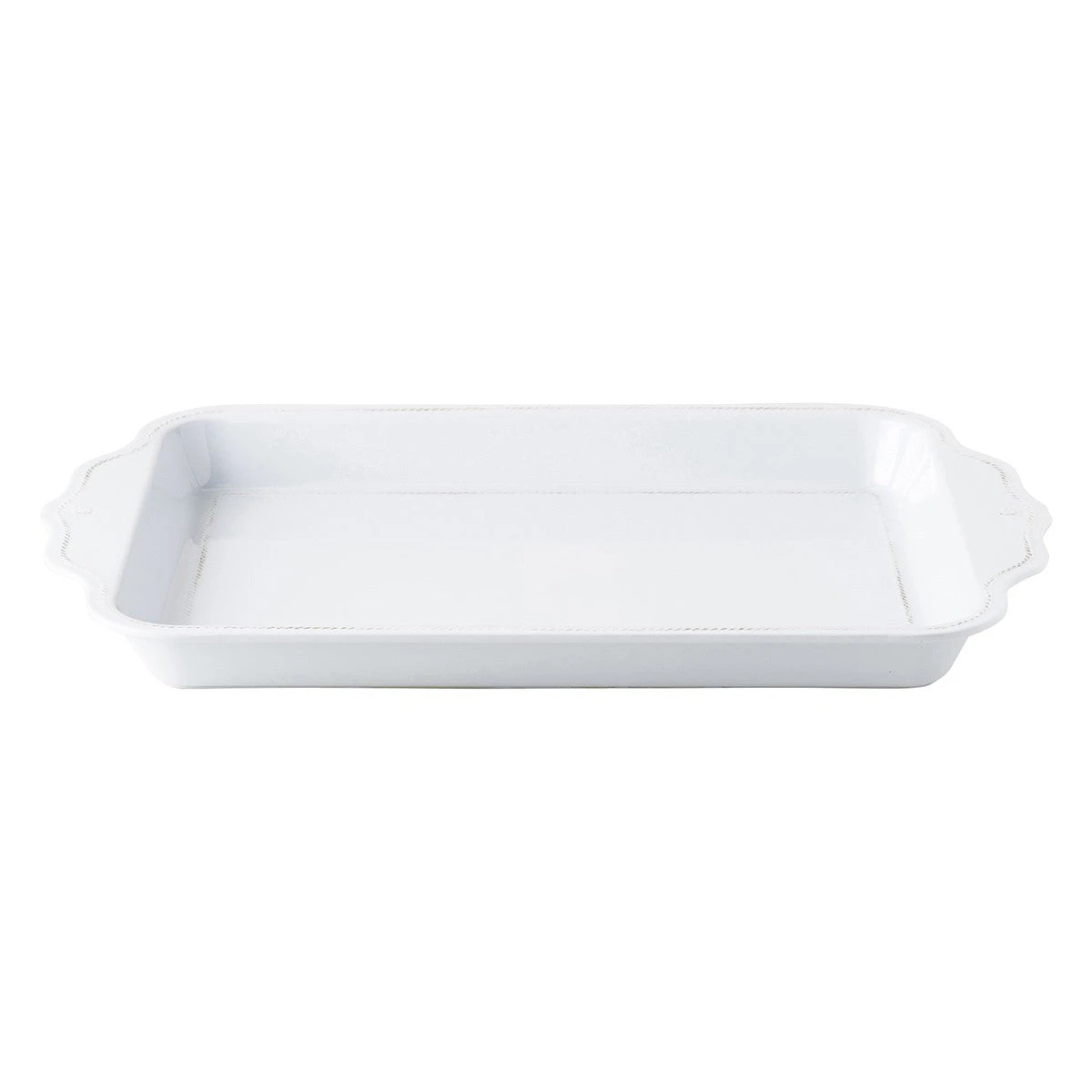 From Juliska’s Al Fresco Collection – Durability meets design with the iconic Berry & Thread motif on melamine dinnerware, perfect for the adventurous entertainer. This generously sized tray will make it easy to transport all your table settings and BBQ accoutrements to the patio in one foul swoop!