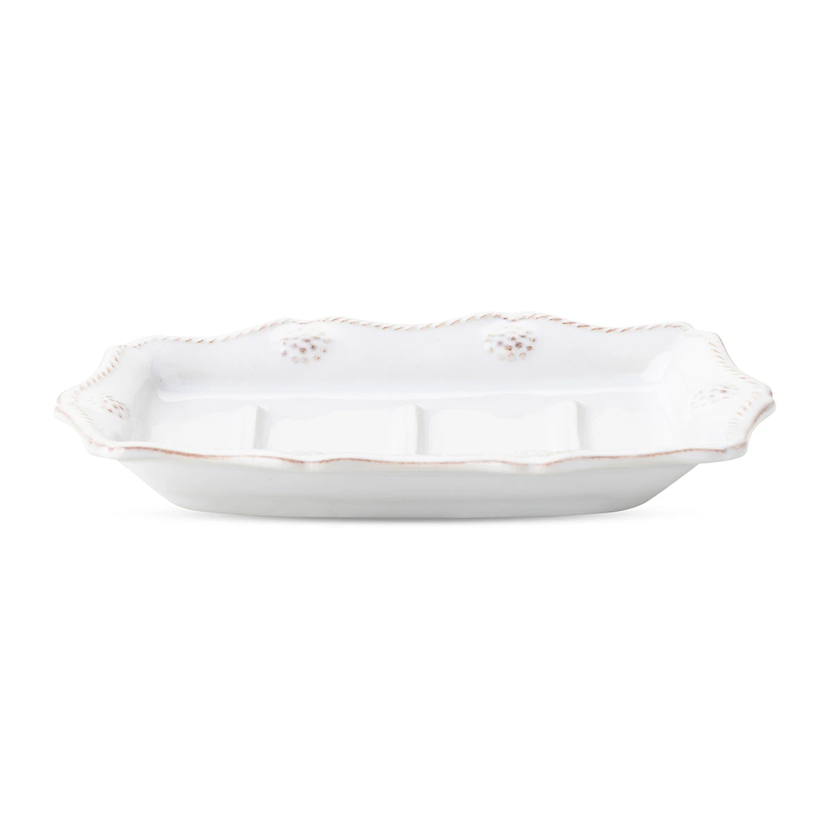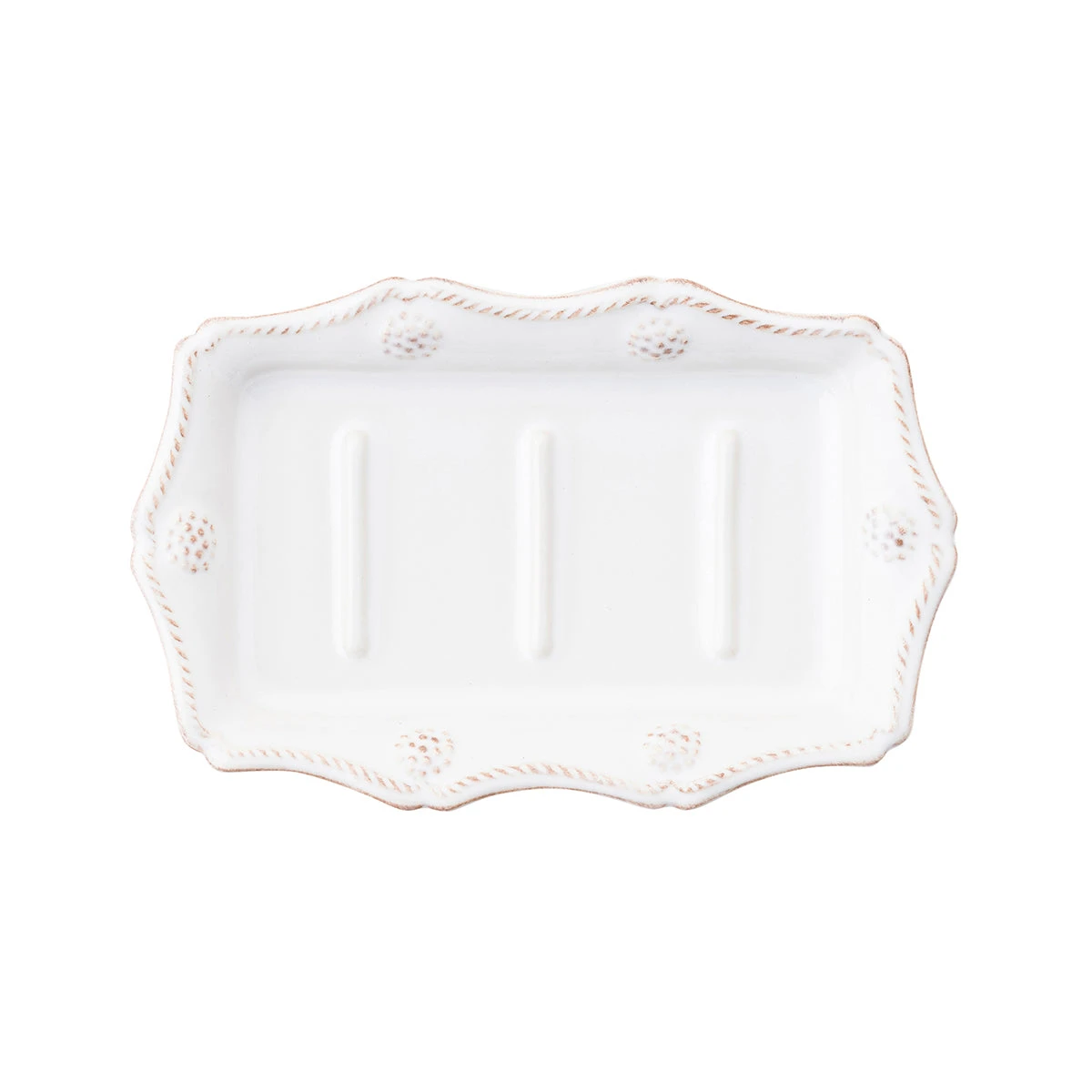 Whether at your bathroom or kitchen sink – this scalloped Berry & Thread soap dish makes a pretty little place to nest your soaps and sponges.