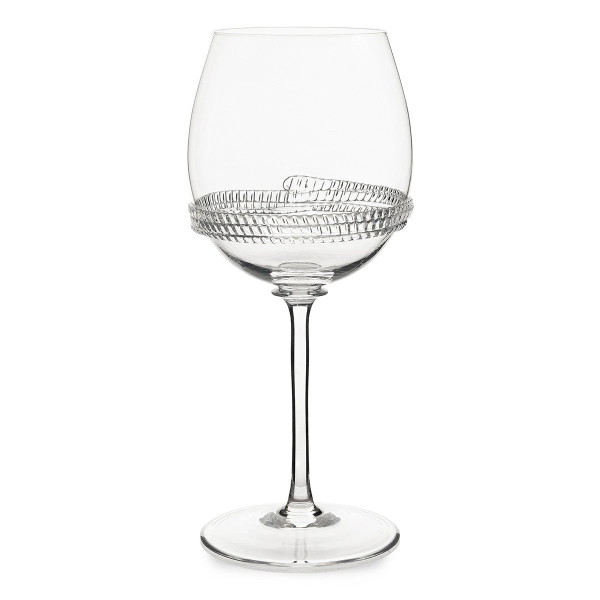 From Juliska’s Dean Collection – This sturdy yet simple mouth-blown wine glass offers a versatile shape encircled with glass rope detail.