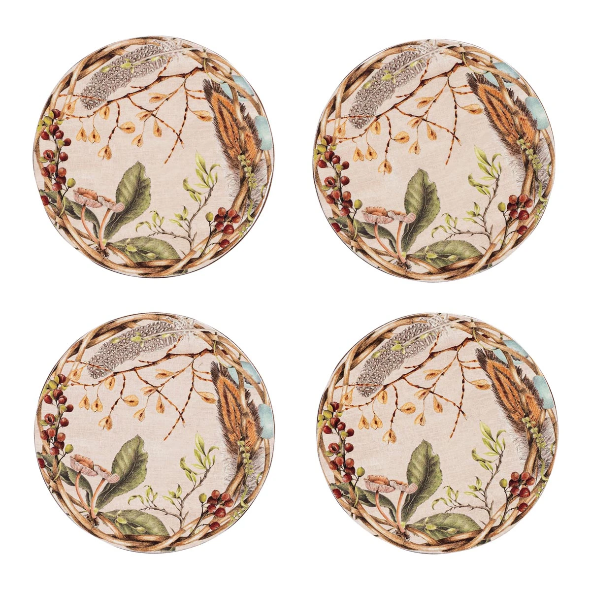 Artistic renderings capturing found organic elements from the forest — branches, brambles, feathers, and leaves — are the perfect resting place for a glass of sparkling cider, hard cider, or craft cocktail to celebrate Fall.