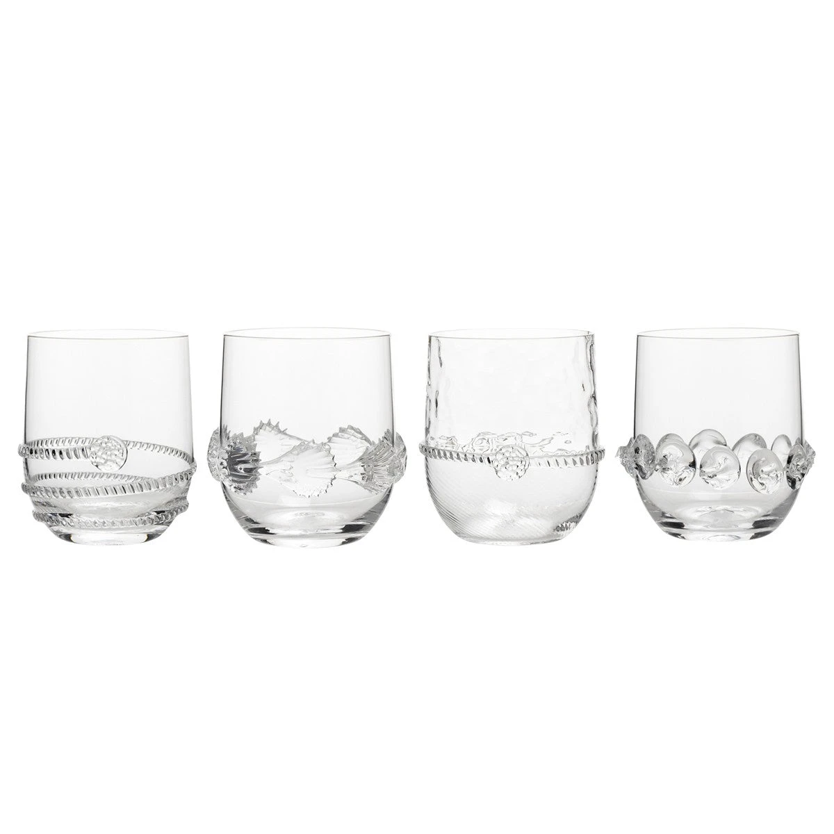 This sparkling set of quintessential entertaining glasses features a different signature motif for each hand-blown piece to create a foursome that is as handsome as it is unique.