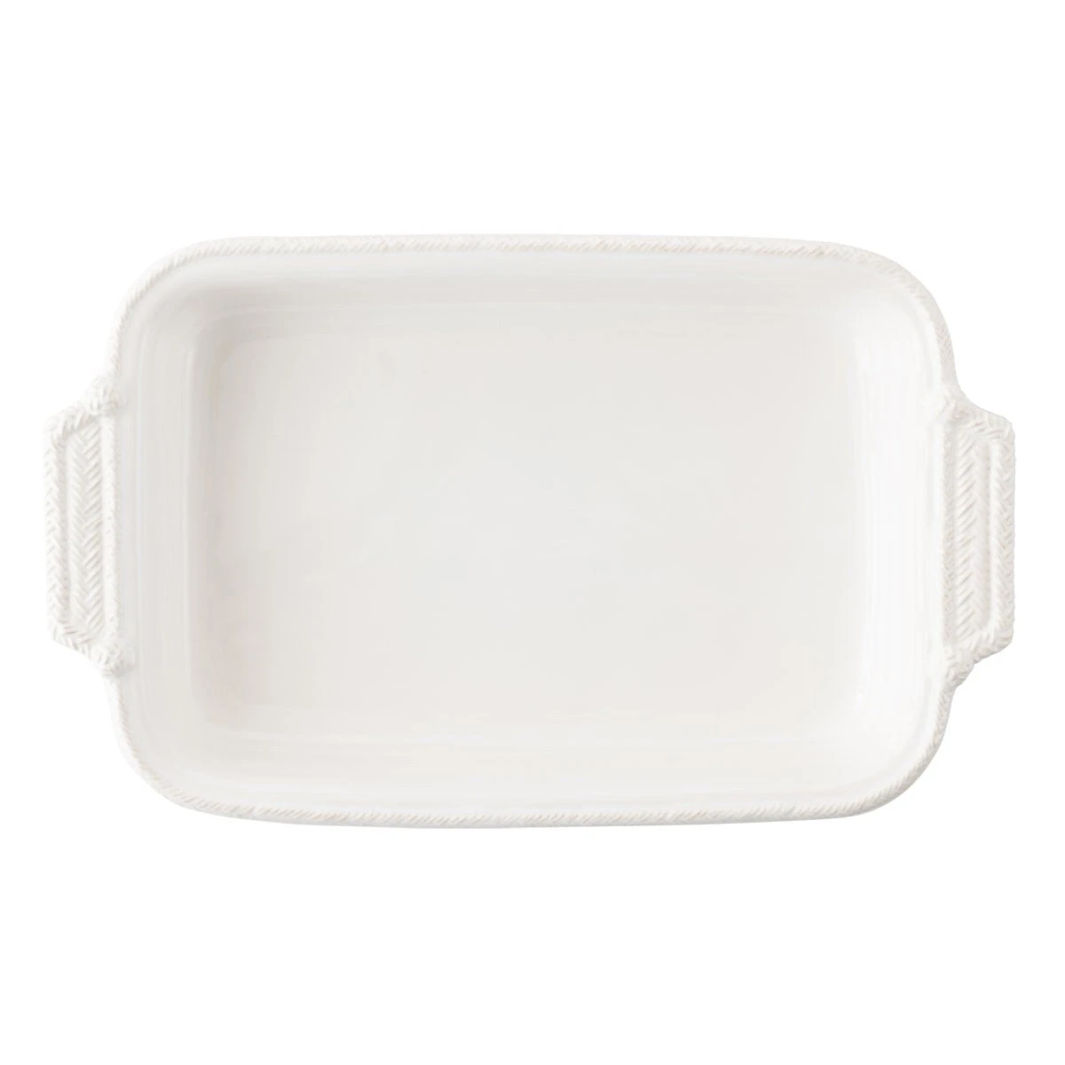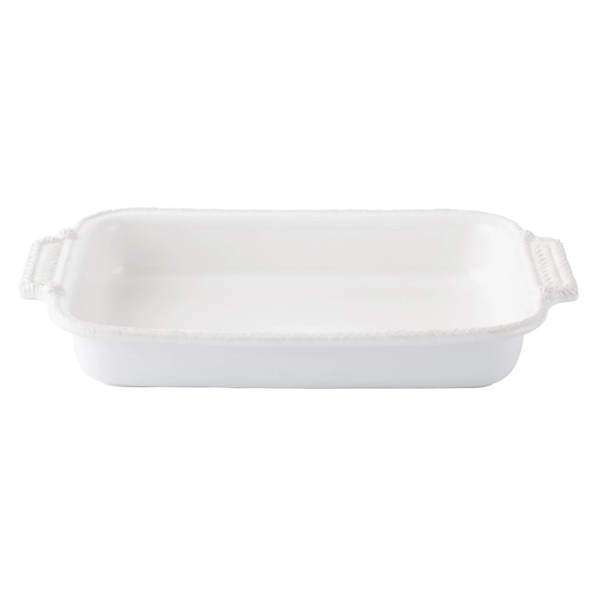 From the Le Panier Collection – The whitewash braided border on this large baking dish is reminiscent of nautical and equestrian traditions. The pair of pretty handles helps serve up rustic refinement in spades to pair with your legendary cherry lattice slab pie to treat a crowd. Juliska’s ceramic stoneware is made in Portugal and is dishwasher, freezer, microwave and oven safe.