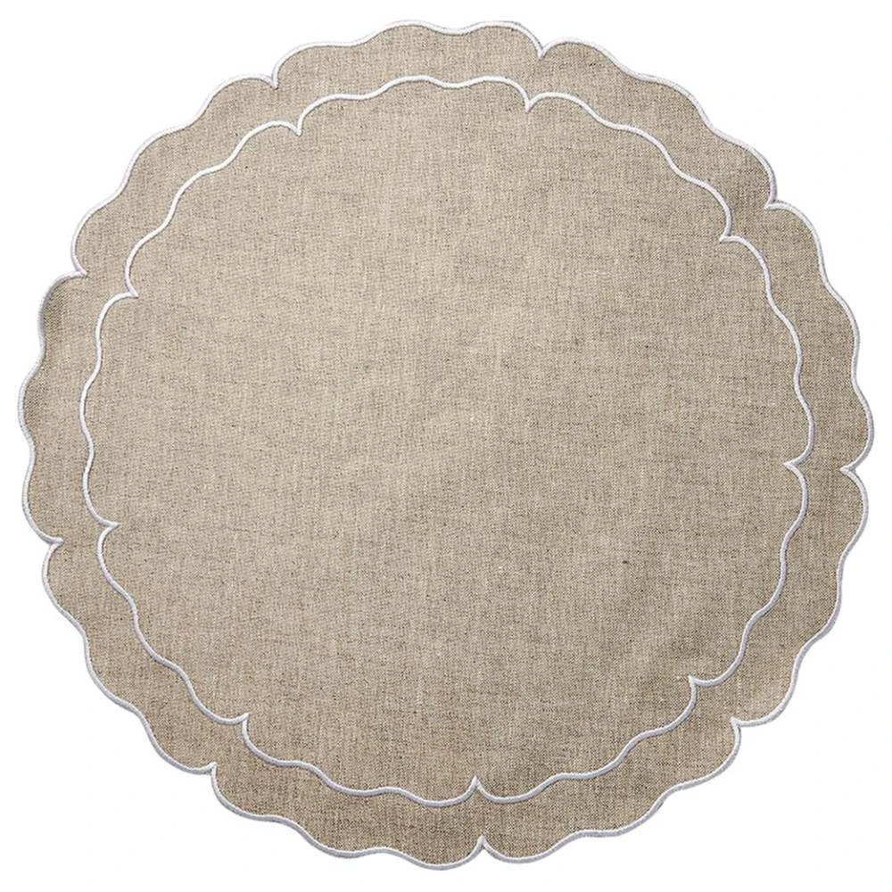 These exquisite mats are made in Portugal of 100% pure linen and treated with a light acrylic coating. A beautiful double embroidered border follows the lines of the sophisticated and fabulous shapes. Linho linens are a dining essential as they are the perfect complement to any table setting, from casual to the most formal.