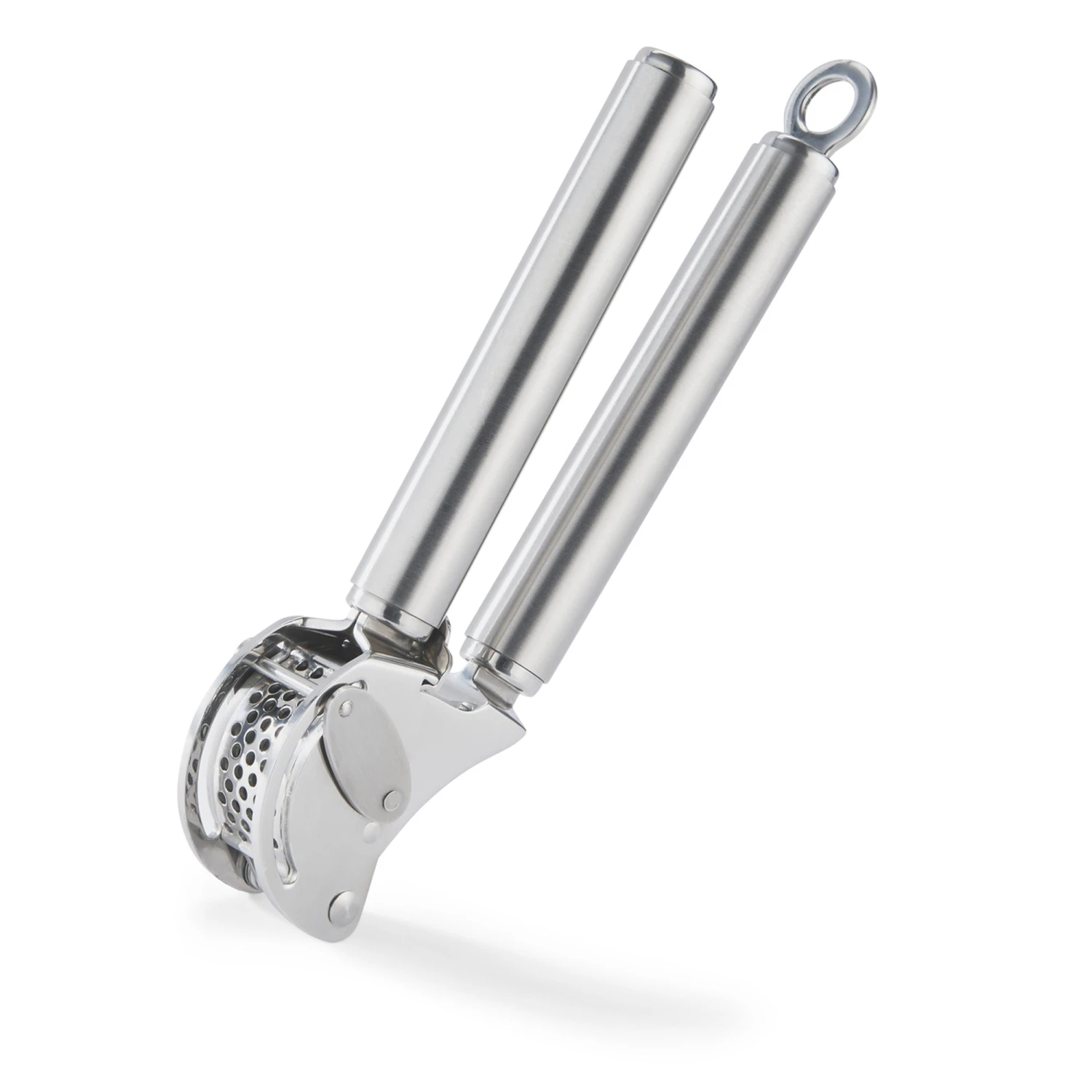 Even unpeeled garlic cloves can be easily processed with the Garlic Press. A special leverage mechanism ensures that minimum effort is required. The sieve component swings up for easy cleaning under running water.