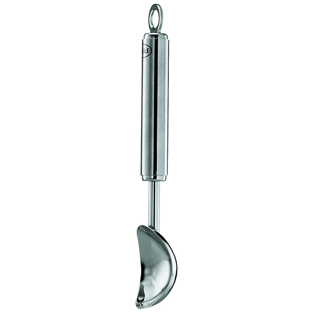 With the smooth fine rim of the Rosle Ice Cream Scoop portions of ice cream and similar desserts can be formed into attractive round shapes.