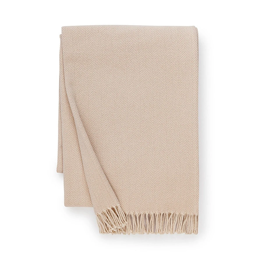 Cotton, when brushed, undergoes a transformation that gives it a plush, alluring texture. Our best-selling Celine throw blends soft colors with cream in a herringbone weave and is finished with a twisted fringe.