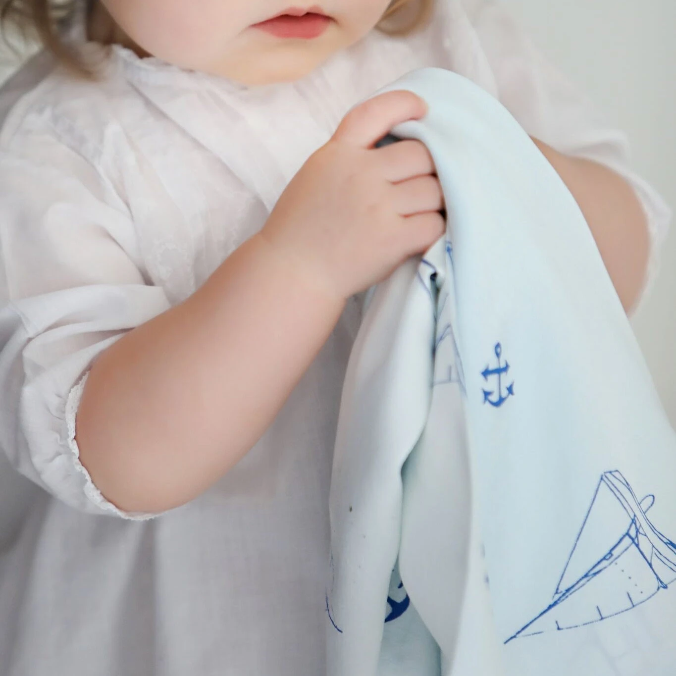 Silk charmeuse baby blanket, 11″x17″. Hand dyed, hand printed in sailboat pattern. Available in blue or pink.