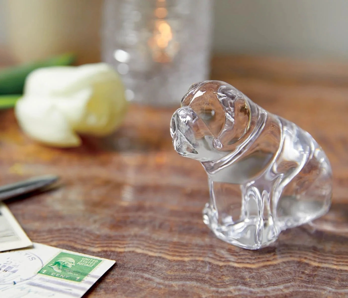 As many dog lovers will attest: it’s hard to stop at just one. And so, Simon Pearce handcrafted another glass dog, this time, with a stocky, cuddly build for fans of bulldog breeds and their ilk – and as a reminder of mascots from many an alma mater. Named after a Northern Vermont town, this sweet pal is as loveable as the original– and, like the first, symbolizes unconditional love and true friendship.