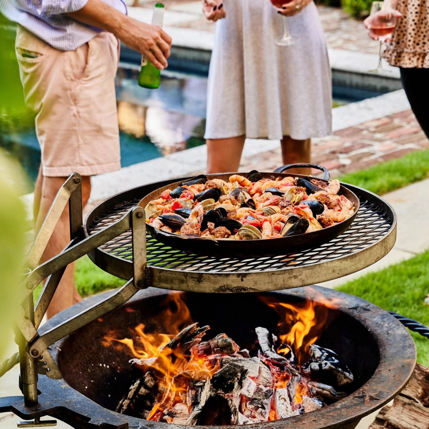 Make a statement and embrace cooking for a crowd with the stunning new 17″ party pan from Smithey, the largest creation to date. Hand-forged by Smithey’s skilled blacksmiths and destined to be a treasured family heirloom, this pan will have you thinking big. Perfect paella? Sure thing. Spatchcock a turkey? No problem. Fry up a dozen eggs and bacon at once? Why not? Did we mention that it’s BIG? It also functions as a beautiful serving piece for those times that call for cooler appetizers or oysters on the half shell. You’ll have fun with this one – use it well!