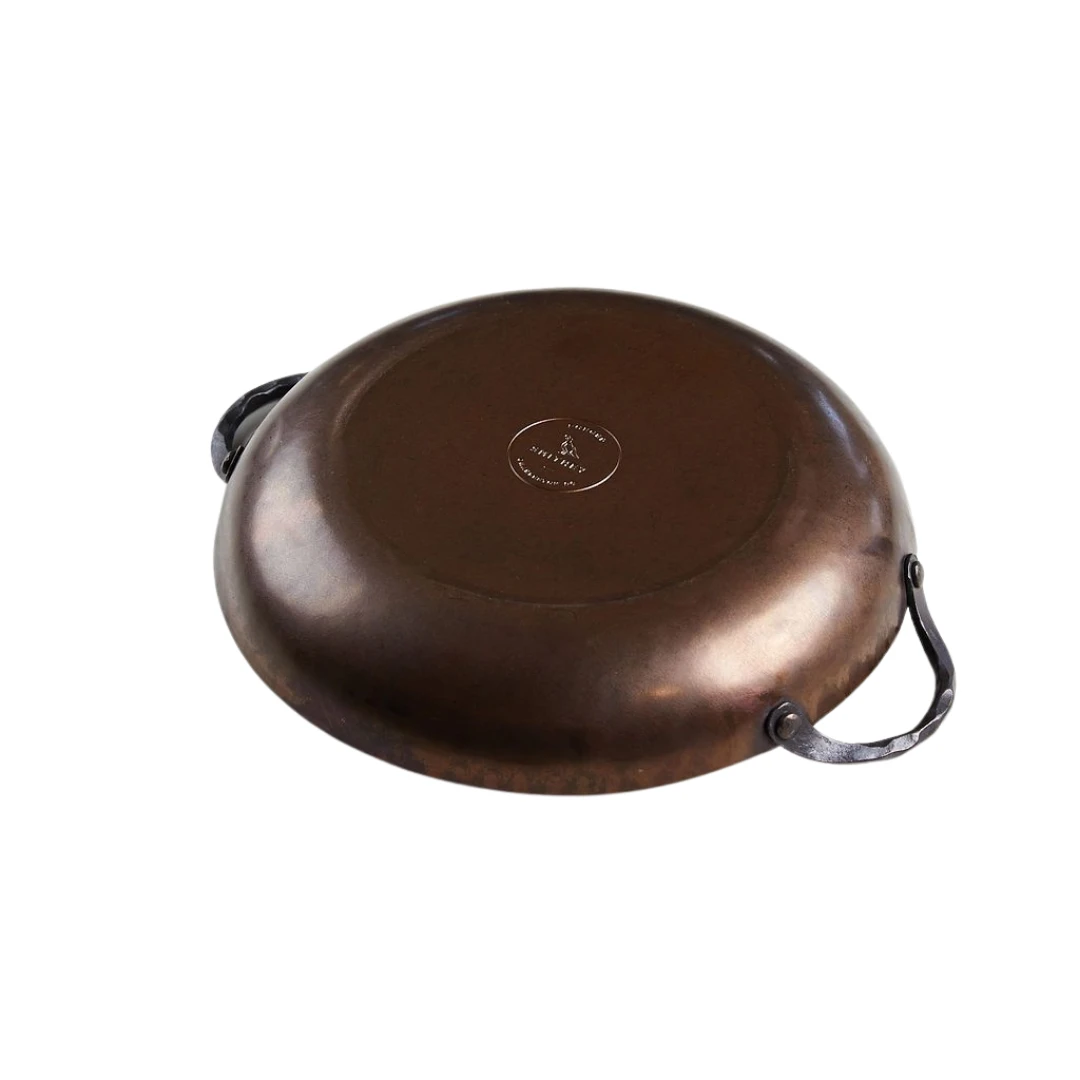 The round roaster is a stunning and versatile kitchen companion designed to move seamlessly from stovetop to oven to table. With a large cooking surface and optimum depth, the round roaster is at home searing pork chops, roasting vegetables, sautéing shrimp, braising short ribs, and even baking a casserole. Hand-forged and limited in quantity, each round roaster is visually unique while sharing fundamental design elements including hand hammered handles with a texture designed for easy gripping and a beautiful pre-seasoned interior finish. With performance that rivals cast iron at a lighter weight, this roaster is a perfect gift for the cook who has everything.