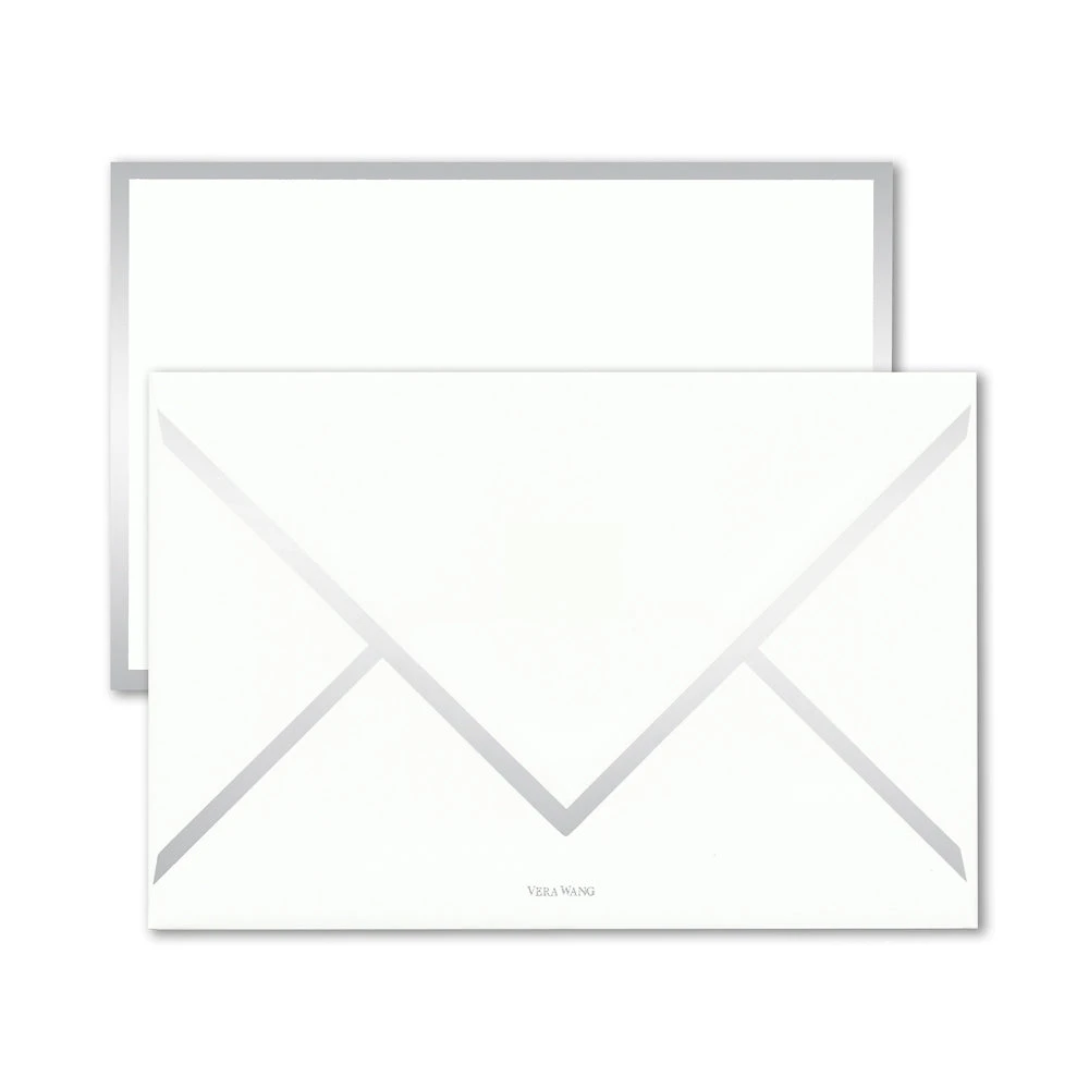 Deliver a greeting with sheen and shine on this beautifully silver bordered card. Each card comes with a coordinating bordered envelope.
