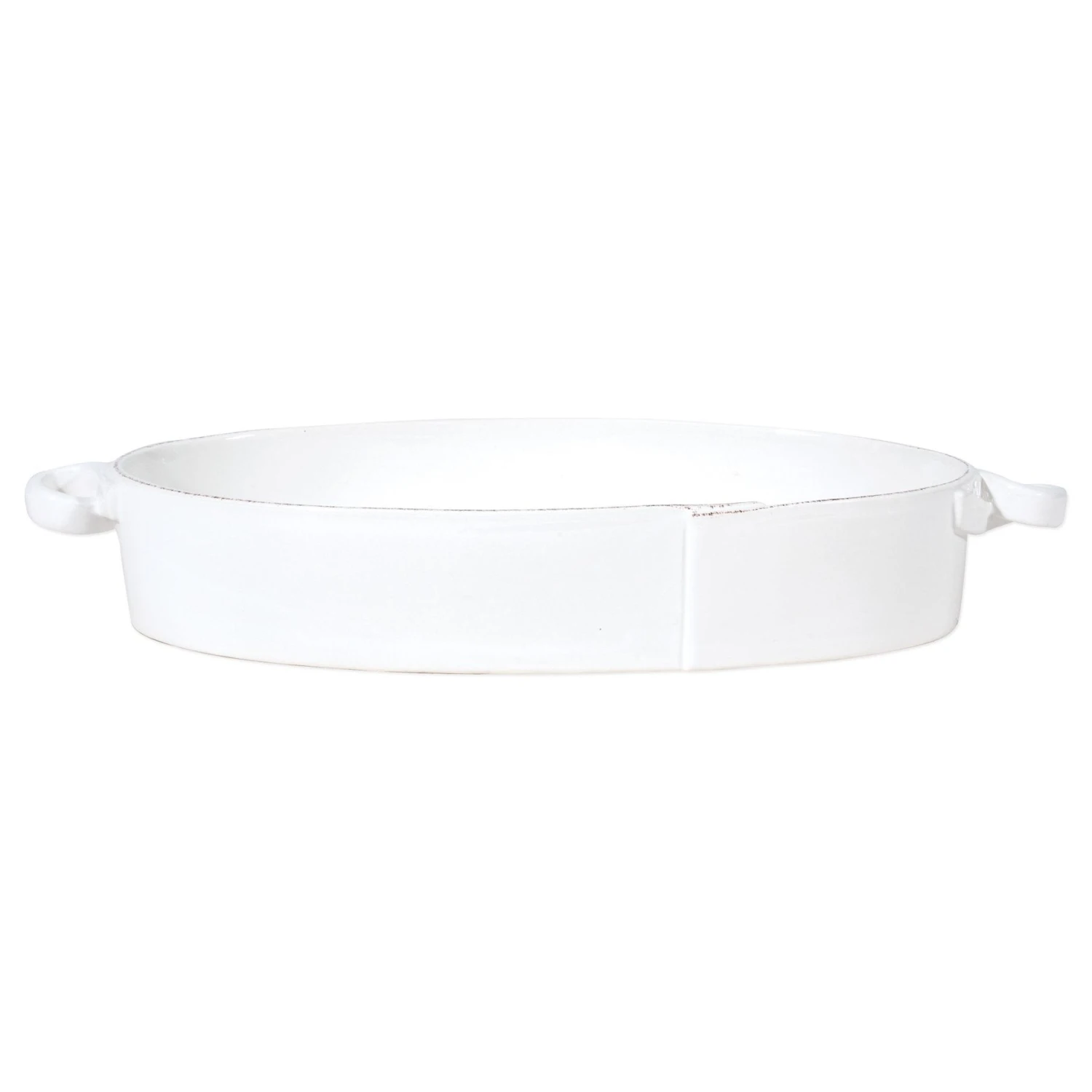 Bake and serve your grandmother’s famous casserole in this Lastra white handled oval baker. A great piece for casual, elegant entertaining. Made in Tuscany of Italian stoneware.