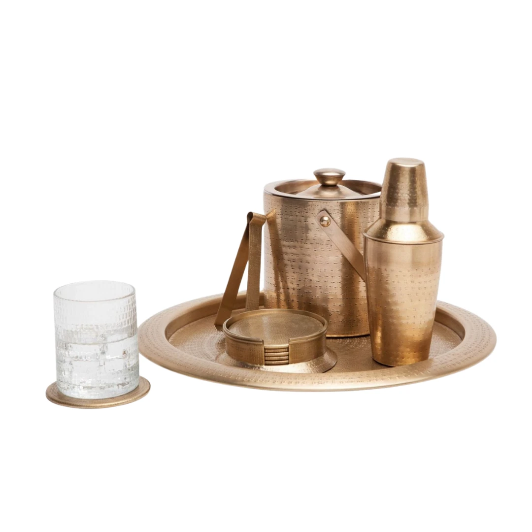 Make your bar modern with the gleaming etched texture of the Winsford antique brass bar collection. The Winsford’s crisscross-patterned surface adds a textural depth to its bottle-service-worthy shine.